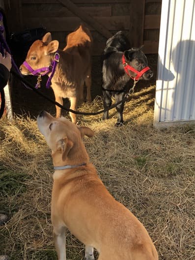 We use horse treats & Alfalfa Cubes for spoiling our Grass Dogs (cows). They all enjoy chin & chest scratches too! We are big on positive reinforcement & feel that everyone should be treated with love.